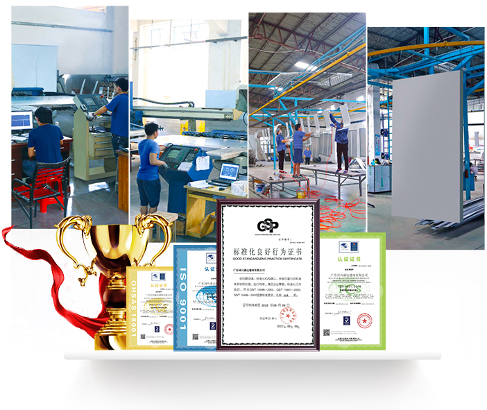 • 擁有3萬平方米生產基地,配備完善的鋁單板生產線。公司不惜巨資,從國外引進先進設備、技術提升產品品質,打造環保產品目前,引進德國漢高純凈水前處理系統,日本蘭氏全自動靜電噴涂系統。